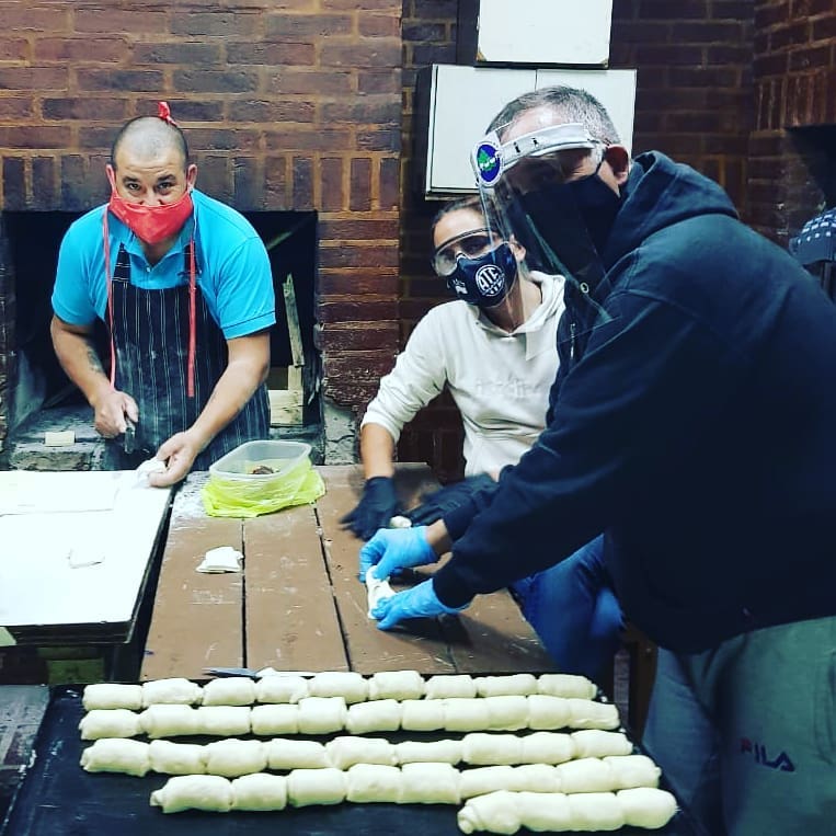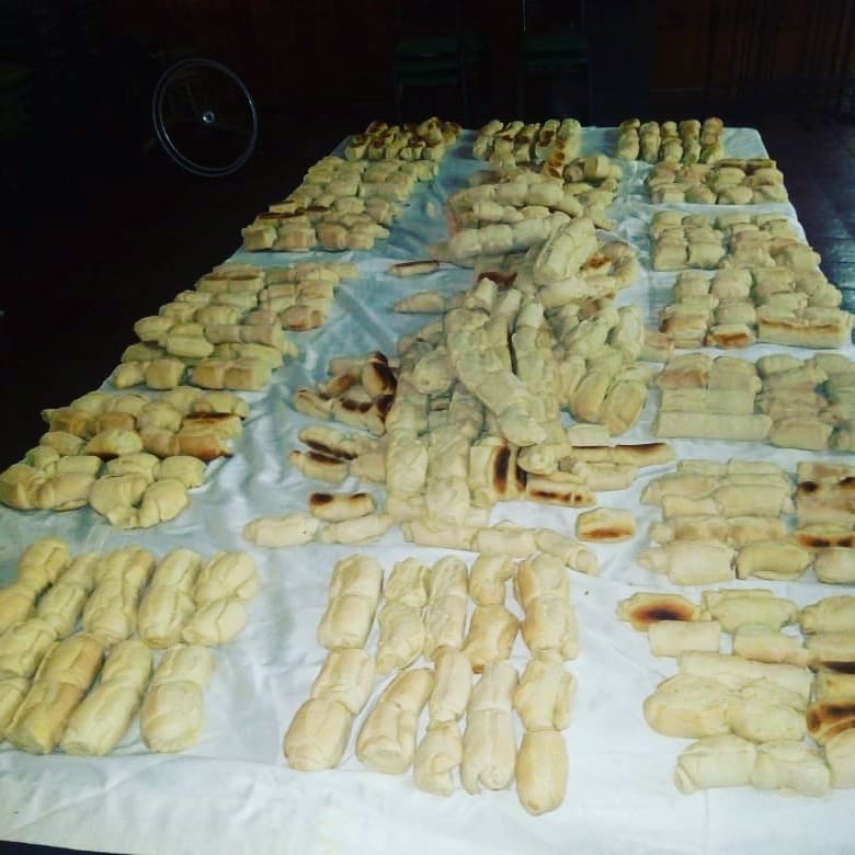 A todo esto surgió la propuesta de un compañero del sector comedor, que es maestro pastelero, de amasar pan ya que tiene todas las maquinas para hacerlo. La llamamos “Amasando con el corazón-Pan para los comedores de la región”. Se realizaron tres jornadas de 80 kg de pan cada una y se donó a los comedores de Ensenada, Berisso, y La Plata.