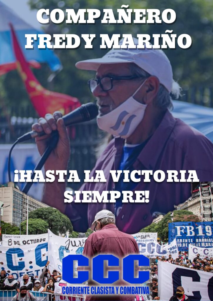 El pasado sábado 2 de abril, falleció nuestro querido compañero y dirigente nacional de la Corriente Clasista Combativa, Fredy Mariño. Inmediatamente conocida la triste noticia, compañeros y compañeras de la CCC se expresaron (y aún lo siguen haciendo) en las redes sociales a traves de frases, mensajes, fotos y el relato de momentos compartidos. Todos estamos conmovidos. Sabíamos que este sería el desenlace, pero sabíamos también del valor inmenso del querido Fredy.