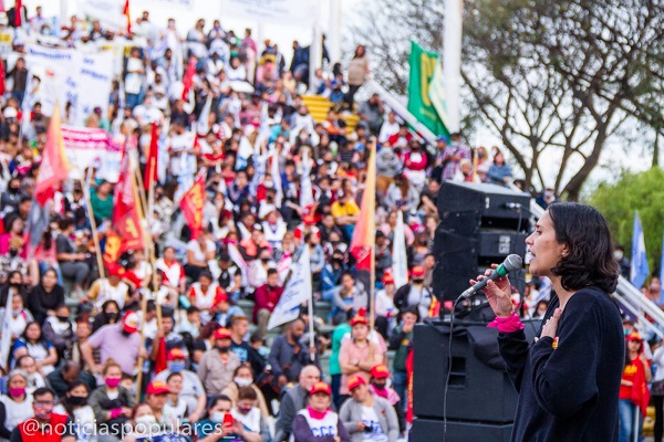 Cerca del final del acto habló la compañera Romina Amaya Guerrero dirigente del PCR- PTP y candidata a consejera escolar por el Frente de Todos: “Tenemos por delante un desafío muy grande, que es un desafío para la Argentina pero que también lo es para toda la América Latina. Nuestro continente está recorrido por luchas enormes y estamos hermanados con esos pueblos que se rebelan ante los gobiernos antipopulares”. Y señaló: “Al gobierno de Macri, el Fondo Monetario Internacional le dió 44 mil millones de dólares para que ganara las elecciones, así y todo lo derrotamos, el pueblo fue contundente. Por eso, por el origen de esa deuda odiosa, esa estafa que hizo el Macrismo, esa deuda no hay que pagarla, y cada peso tiene que estar destinado a las emergencias populares, a las necesidades de nuestro pueblo”.