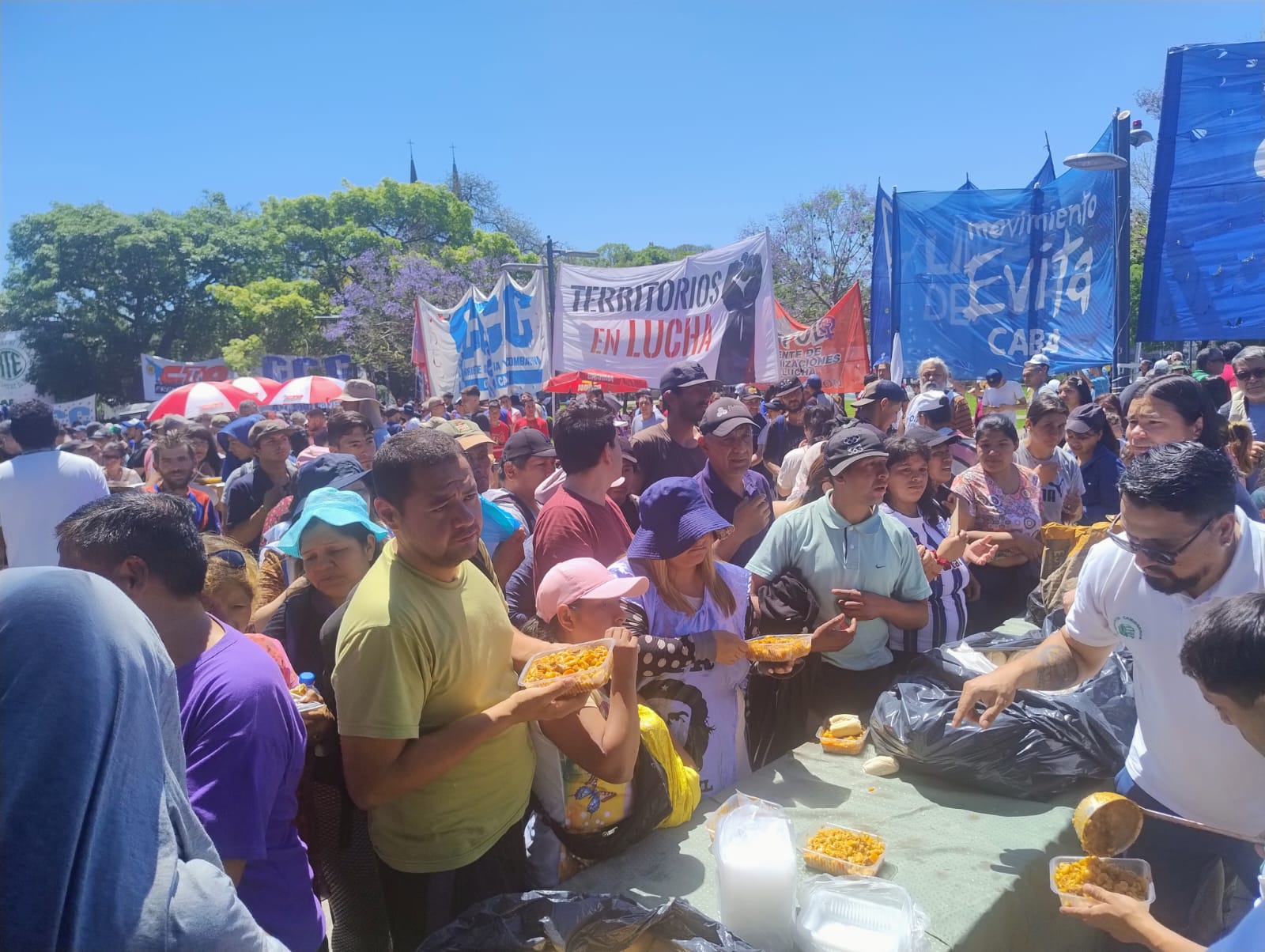 Seguimos luchando por nuestras reivindicaciones, que incluyen un aumento de los programas sociales ex Potenciar Trabajo, los cuales están congelados en $78.000 desde el año pasado. También exigimos alimentos para los comedores y merenderos, mientras que desde el Ministerio de Capital Humano se gastan millones en una cafetera y catering para los amigos.