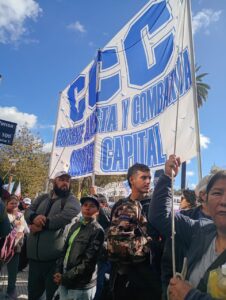 “Conmemorando la realización de los cabildos abiertos que preludiaron el nacimiento de la patria. Ahora que tenemos un gobierno que quiere destruirla, estamos acá las centrales, acompañadas por los organismos de DDHH, de los movimientos sociales, por gremios de la CGT, dando continuidad al plan de lucha y afirmando que como ayer lo hizo el pueblo de Tierra del Fuego, con un paro comunitario en esa provincia, nuestro plan de lucha continuará construyendo un paro comunitario en todo el territorio nacional”.