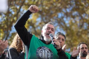 “Hay gobernadores que creen que se van a salvar solos, que van a recibir fondos. Hoy los empleados del estado y jubilados están trabajando para que las corporaciones se queden con la plata. Pero la plata debe volver a las provincias, porque la plata de los argentinos es de los argentinos. Quienes piensan que con decretos que ya fueron declarados inconstitucionales, van a impedir la huelga, se equivocan. Acá hubo dirigentes asesinados por la dictadura, corrió sangre y el pueblo no agachó la cabeza. Con o sin decreto, la huelga va a seguir siendo la herramienta de los trabajadores”.