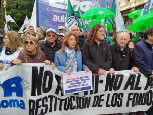 “Frente al intento de infundir miedo, todas estas organizaciones estuvimos acá para pelear y estar al frente en defensa de nuestra dignidad. No puede ser que quiten fondos a las provincias, el Estado Nacional se sigue quedando con el 80% de todo lo que se recauda en impuestos. Se tiene que terminar. Que Milei y Macri dejen de vivir con la nuestra y que la coparticipación se distribuya de acuerdo a las necesidades de cada una de las provincias”.